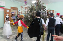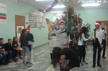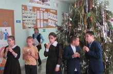 25 декабря учащиеся 8 класса с нвогодним представлением выступили в "Зимнем капустнике" перед учащимися начальных и средних классов под руководством учителя музыки и рисования Кудряшовой Ольги Юрьевны.