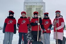 Очистка территории вокруг памятника Неизвестному солдату. 20.02.2024
