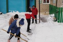 Уборка снега на прилегающей к школе территории. Школой принимаются меры по уборке снега, пешеходных дорожек, очистка крыш от накапливающегося на них снега и наледи на отведенных и прилегающих к учреждению территории.