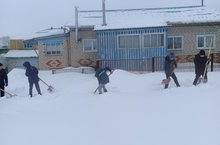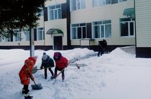 Очистка от снега территории школы происходят ежедневно на уроках технологии, в целях безопасности запасные входы и выходы должны быть очищены.