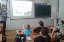 На занятии внеурочной деятельности первоклассники отвечали на вопросы викторины «В стране ПДД» и отгадывали загадки, а в страну знаний по правилам дорожного движения повела классный руководитель Еферова И.А.