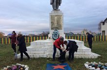 Очистка территории от мусора возле памятника "Воину-освободителю" учащимися 9 класса. 24.10.2019
