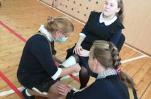 В рамках месячника безопасности в нашей школе прошел День безопасности- показное практическое занятие по действиям учащихся в чрезвычайных ситуациях и соревнование по оказанию первой помощи.