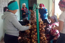 Способов хранения лука много. В нашей школе каждый год делают луковые косички.