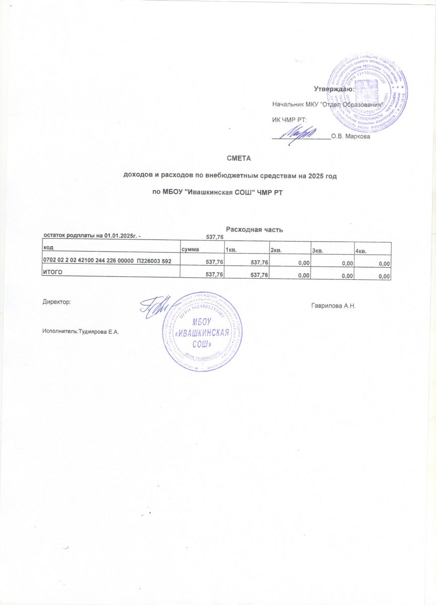 Смета доходов и расходов по внебюджетным средствам на 2025 год (родительская плата)