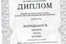 Прошел региональный этап Всероссийской олимпиады школьников по биологии. Известны результаты. Отрадно, что в числе призеров есть и воспитанник нашей школы.