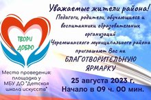25 августа на территории Детской школы искусств пройдет благотворительная ярмарка.