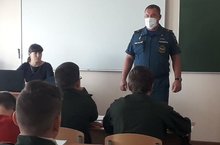 Сегодня нашу школу посетил начальник МОНД по Новошешминскому и Черемшанскому района Гиниятуллов Р.Ф. с открытым уроком в рамках "Месячника безопасности"