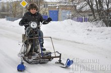 Учитель технологии Черемшанской кадетской школы-интернат Рафис Хуснутдинов нынешним летом удивил всех велосипедом, на котором установил мотор от триммера. А сегодня он, привлекая внимание прохожих, иногда мчится по улицам на «зимнем» мотоцикле, так называемых мотосанях.- -