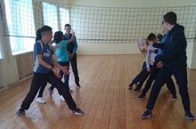 Ребята средних классов занимаются в спортивном зале, проводят эстафеты, соревнуются в разных играх. -