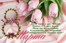 Поздравляем вас с первым праздником весны -8 марта! Желаем вам солнечных улыбок, отличного настроения, крепкого здоровья, огромного счастья!