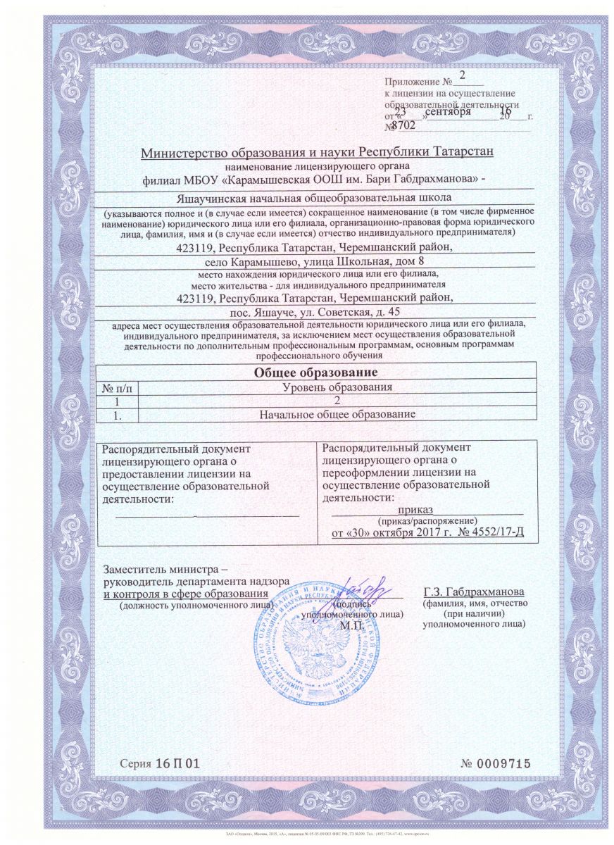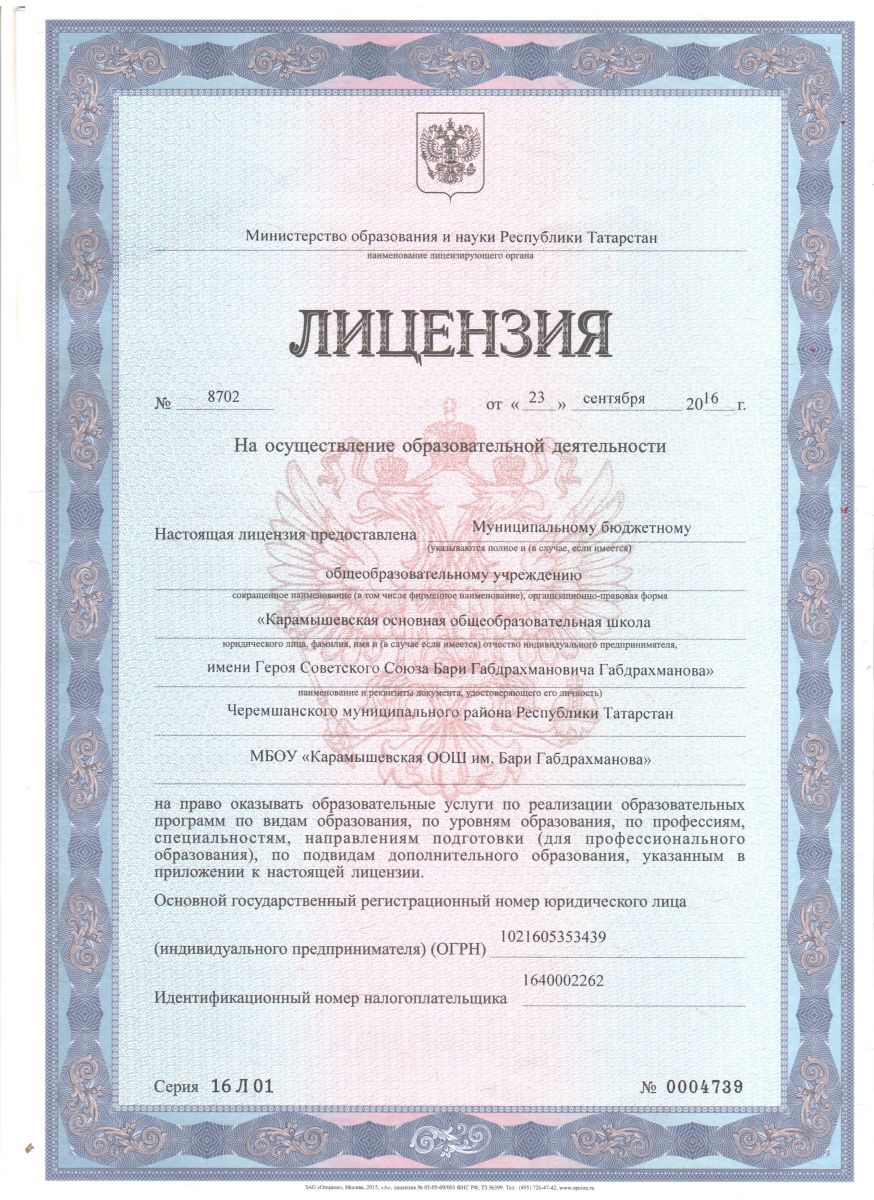 Лицензия на осуществление образовательной деятельности.