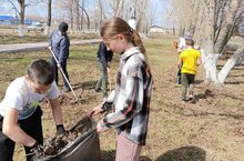 Учащиеся школы собрали мусор вокруг школы и на прилегающих территориях