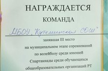 Сегодня на базе МБОУ "Черемшанский лицей" прошел муниципальный этап Спартакиады школьников по волейболу среди юношей. Сборная команды школы заняла 3 место. Поздравляем ребят с победой и желаем дальнейших успехов.