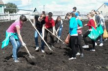 Учащиеся школы занимаются благоустройством территории.