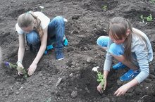 Сегодня учащиеся 5,6,10,11 классов с учителем технологии Кашаевой Н.Г. посадили картофель на школьном огороде.