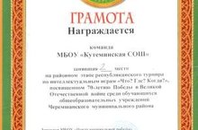 Команда учащихся МБОУ "Кутеминская СОШ" 31 марта приняла участие на районном этапе республиканского турнира по интеллектуальным играм "Что? Где? Когда?", посвященном 70-летию Победы в Великой Отечественной войне.