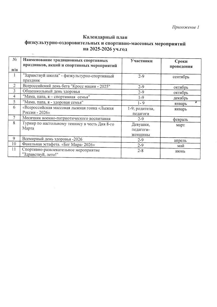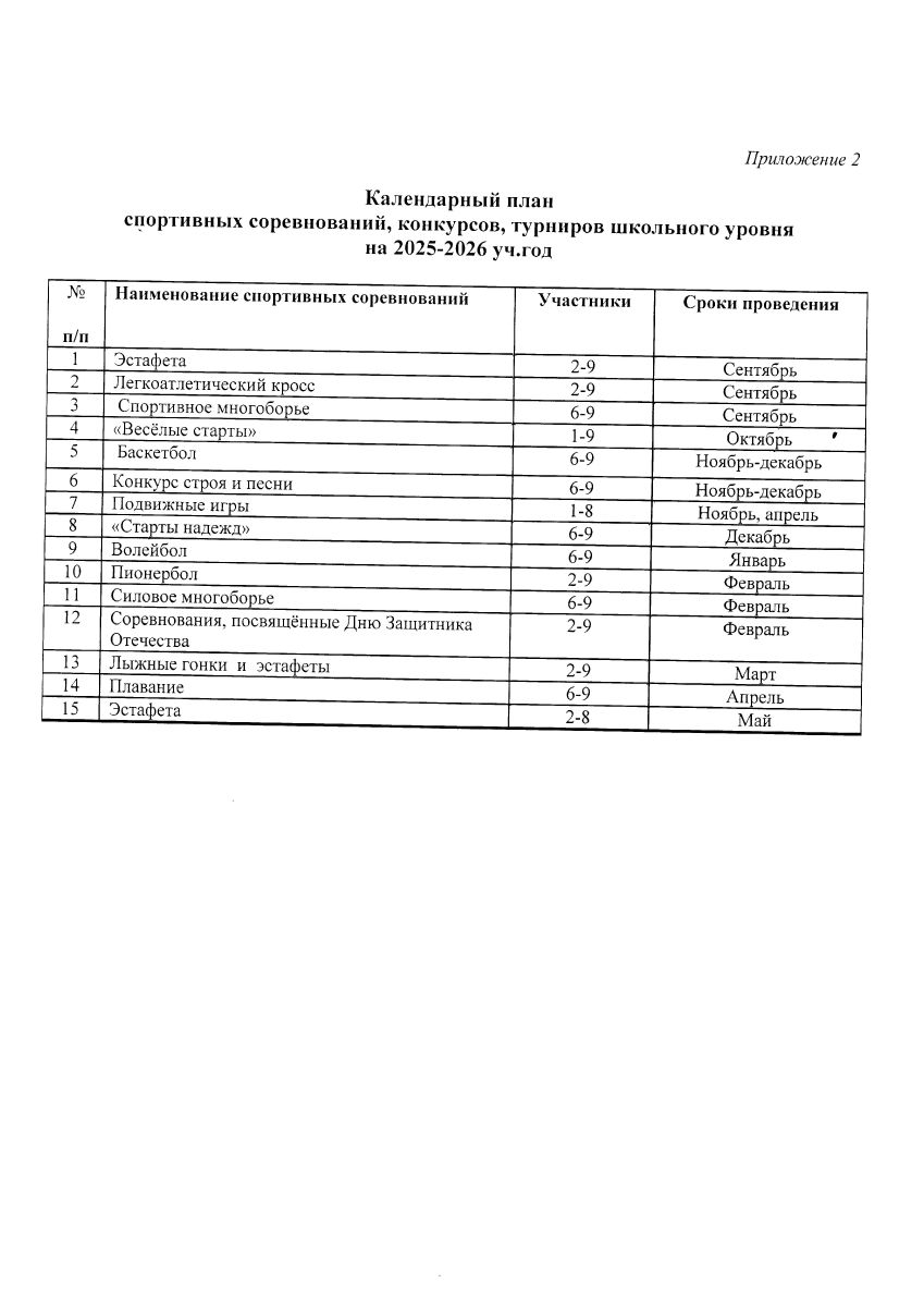 Календарный план спортивных мероприятий МБОУ "Лагерская ООШ" на 2025-2026 учебный год