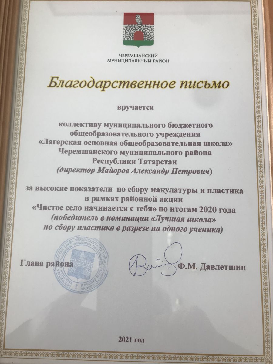 Муниципальное бюджетное общеобразовательное учреждение "Лагерская основная общеобразовательная школа" Черемшанского муниципального района Республики Татарстан