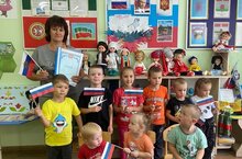 Буген, 22 август - Россия Федерациясе Дәүләт флагы көне билгеләп үтелә. Әлеге истәлекле көн уңаеннан безнең балалар бакчасында төрле чаралар үткәрелде: балалар флагтагы hәр төснең мәгънәсе белән таныштылар, флагларны танырга, дәүләт символикаларын аерырга өйрәнделәр, зур кызыксыну белән Россия флагын ясадылар.Дәүләт символларына ихтирамлы караш һәрберебездә гражданлык һәм патриотик үзаң формалаштыра, Ватанга мәхәббәт хисе уята.