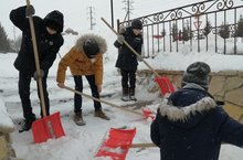 Вооружившись лопатами, активисты тимуровского отряда дружно убрали скопившийся у дома престарелых снег, расчистили дорожки..