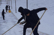 Активисты МБОУ "Черемшанский лицей" Тимуровского отряда и ШУС «Мы лидеры» провели акцию «Стоп – снег!», посвященную 75-летию Победы.