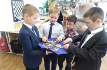 В начальных классах учащиеся с родителями вместе создают дидактические пособия для игры в шахматы из самых простых материалов.