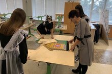 ???? Курчак спектакльләре өчен кышкы декорация әзерләнде. Технология укытучысы В.В. Ермолаев кирәкле агачтан фигураларны кисте. Аннары технология укытучысы Т.Г. Новичкова белән бергә Гөлназ Мортазина һәм Сәидә Харисова (9а класс укучылары) кышкы күренешләрне ясады һәм буяды. 3а класс укучысы Вәсилә Мулькаманова агачтан ат-арба эшләнмәләрен оста итеп буяп куйды. Күмәк көч белән яңа декорация әзер. Тиздән яңа спектакльне тамаша кылачакбыз.