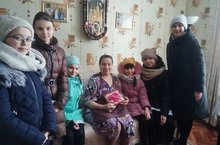 Члены тимуровского отряда, вместе с педагогом – организатором Галимовой Р.Р. рады были возможности пообщаться и поздравить с наступающим 8 марта вдову ветерана: Ромину Антонину Ивановну (02.09.28). -