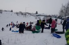 По снежку на санках детиМчатся с горки, словно ветер.Кто боится в снег свалиться —Пусть на санки не садится. -