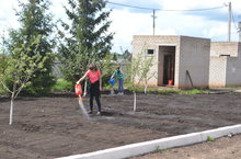 В лицее учащиеся работают на пришкольном участке. Одни заняты посадкой картофеля, лука, моркови, свеклы и цветов, а другие-поливают.