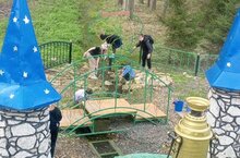 Все с радостью приводили в порядок школьную территорию: собирали мусор, приводили в порядок клумбы, подметали участок. Совместными усилиями за несколько часов школьная территория преобразилась, посвежела.