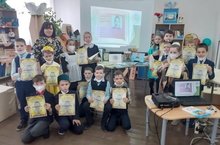 Укучылар китапханәгә буш кул белэн килмәгәннәр " Эш беткэч уйнарга ярый" белэн "Кызыклы шэкерт" эсэрлэре буенча сценка күрсәткәннәр. Соңыннан "Бала белән күбәләк " шигырьенә язылган жырын башкардылар.