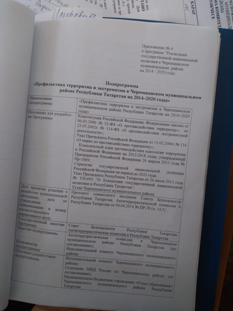План мероприятий по профилактике терроризма и экстремизма в МБОУ "Черемшанский лицей"