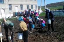 Сегодня учащиеся, учителя и школьные работники нашей школы на своём пришкольном участке посадили «второй хлеб».