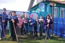 Учащиеся 8 класса с учителем технологии Ваничковой Т.М. очистили территорию вокруг мемориала погибшим односельчанам.