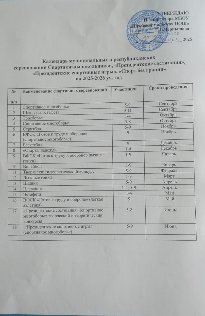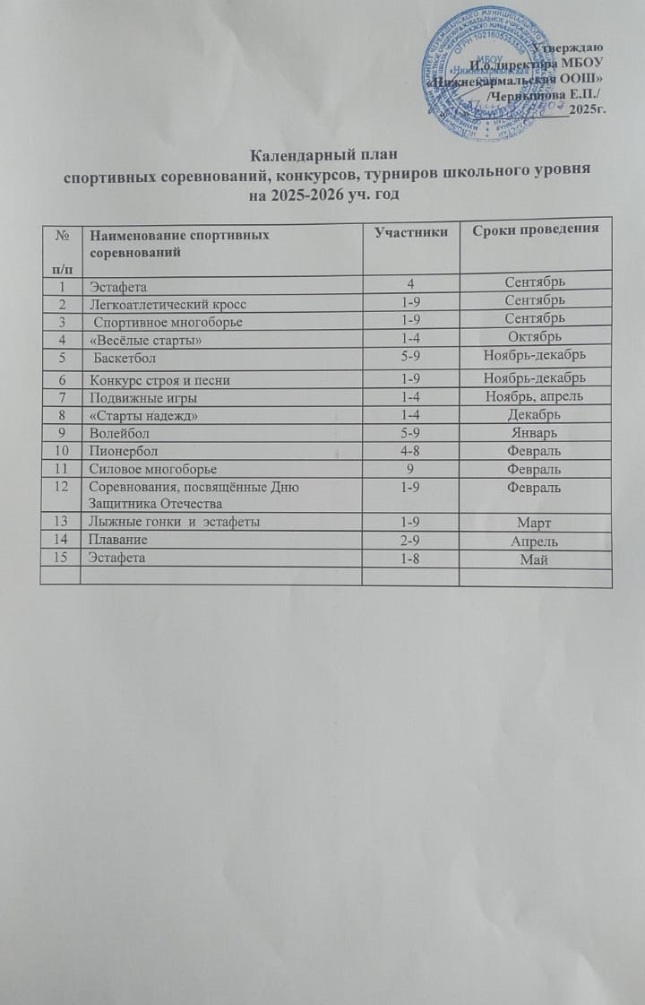 Календарный план спортивных соревнований, конкурсов, турниров школьного уровня на учебный год