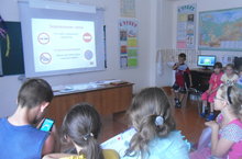 Сегодняшний день прошел очень насыщенно. Дети ни минутки не сидели без дела. Провели заочное путешествие в страну "Дорожных знаков". Вспоминали 7 типов дорожных знаков, после которого провели мини - тест по ним. Дети с удовольствием играли в подвижные игры, состязались командами. После обеда провели беседу и просмотрели презентацию на тему "Я никогда не видел войны". В конце дня подвели итоги и ознакомились с планом работы на следующий день.