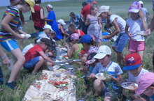 Сегодняшний день прошел насыщенно и увлекательно. До обеда побывали на Стадионе - спортивной площадке села. Сначала познакомились с красотой окрестности стадиона, с широкой и красивой рекой Сульча, с просторами полей, красотой родного села. После этого поиграли в "Веселые старты", "Футбол", где команда "Непоседа" выиграла все состязания.