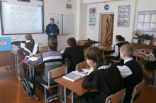 9 апреля школу посетил начальник ОП с. Ульяновка Митюков А.А. с целью проведения с учащимися урока по пожарной бузопасности.