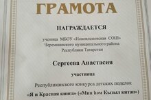 Поздравляем Сергееву Анастасию, ученицу 9 класса с грамотой за участие в Республиканском конкурсе детских поделок "Я и Красная книга" (Рукводитель Данилова Т.Н.)