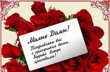 Милые женщины! Поздравляем вас с 8 Марта! Этот красивый праздник в начале весны приходит к нам, когда всё оживает, расцветает и распускается. Пусть в вашей жизни будет вечная весна, пусть ярко светит солнце, пусть поют птицы, пусть дни будут светлыми и безоблачными. Улыбок, хорошего настроения, радости, счастья!