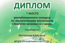 С 27.01.2025 - 16.02.2025 был проведен в г. Набережные Челны «Городским дворцом творчества детей и молодежи №1» республиканский конкурс по экологическому воспитанию «Экология начинается с меня» . В номинации "Фото" ученик 7 класса Фомин Ярослав получил Диплом 3 место; в номинации "Видеоролик"- Диплом 1 место получила учащаяся 8 класса Митюкова Кристина. Поздравляем, дальнейших успехов вам, ребята!