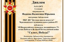 VII Всероссийский конкурс , посвященный 75 летию Победы в ВОВ «Салют , Победа!» 28.05.2020