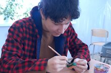 На прошлых уроках студенты нашего Техникума с психологом МПК «Ровесник» сделали сувенирные изделия из глины. Теперь пришло время их оживить с помощью красок.