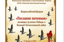 27 февраля на базе ГАПОУ «Казансккий строительный колледж» состоялся Всероссийский форум «Послание потомкам», в котором участвовал студент 481 группы Гаврилов Иван.