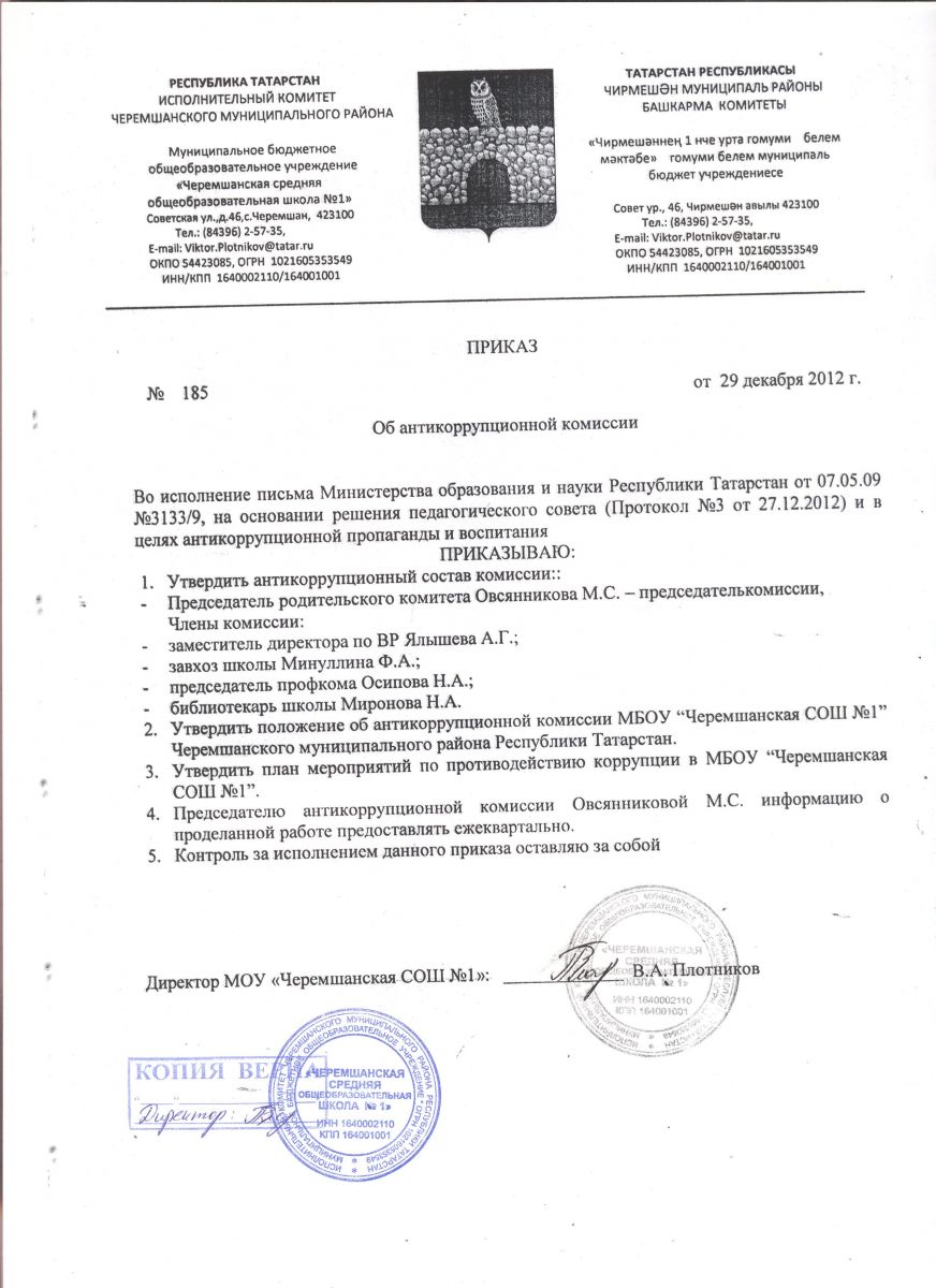 Приказ Об антикоррупционной комиссии