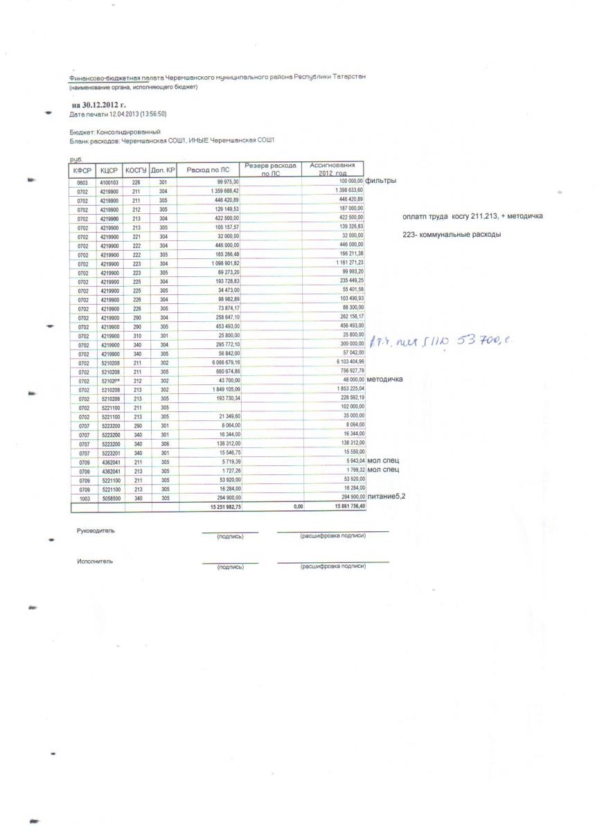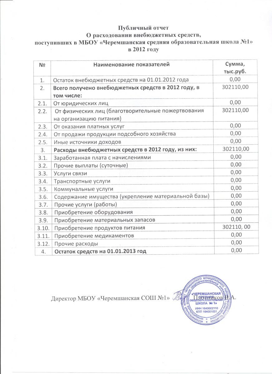 - Публичный отчет о расходовании внебюджетных средств в 2012 году