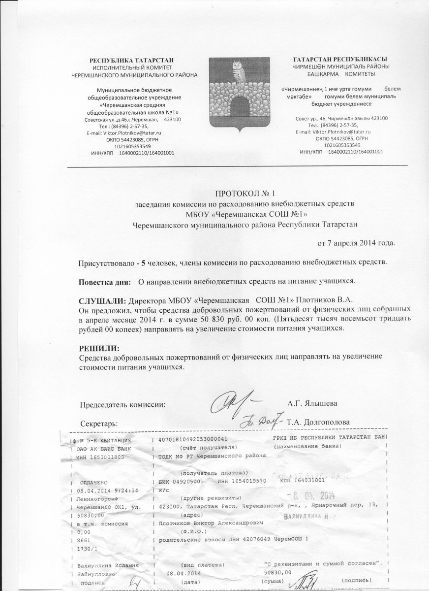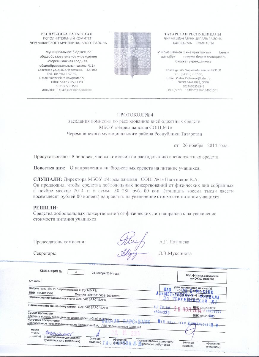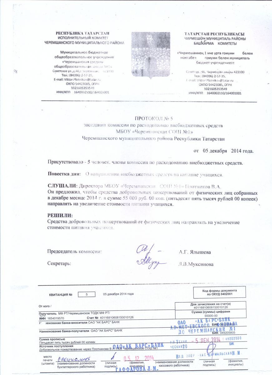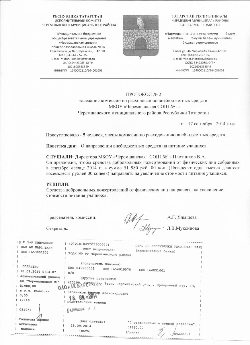 - Протоколы заседания комиссии по расходованию внебюджетных средств 2014 год.Протокол №1, Протокол №2, Протокол № 3, Протокол № 4,Протокол №5