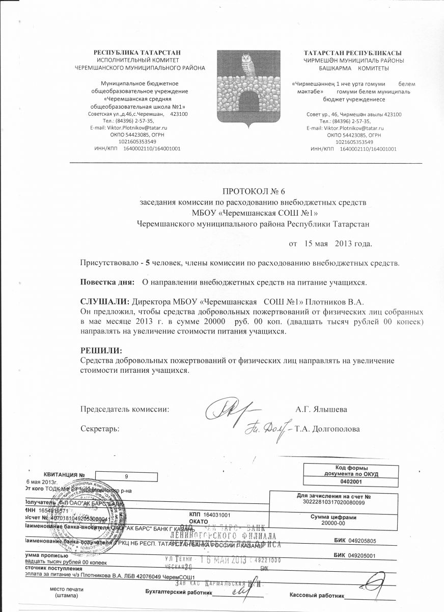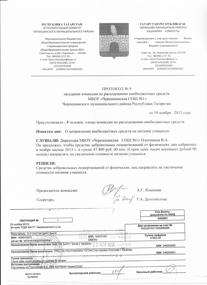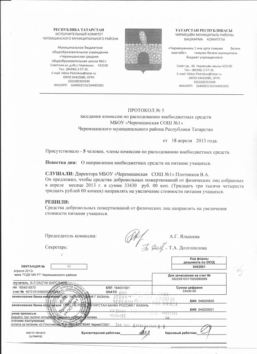 - Протоколы заседания комиссии по расходованию внебюджетных средств 2013 год. Протокол № 5, Протокол №6, Протокол №7, Протокол №8, Протокол №9, Протокол №10